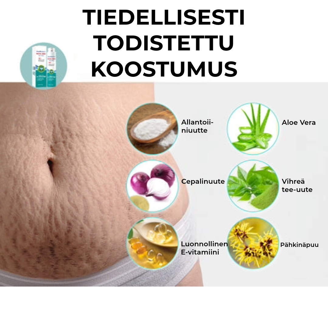 Ainutlaatuinen sekoitus Allantoiinia, Cepalinia ja E-vitamiinia edistää solujen uusiutumista ja nopeuttaa arpiutumisvähenemistä. Kliiniset testit osoittavat, että uudet arvet vähenevät vain 2 viikossa, ja vanhat arvet haalistuvat 4-8 viikossa.