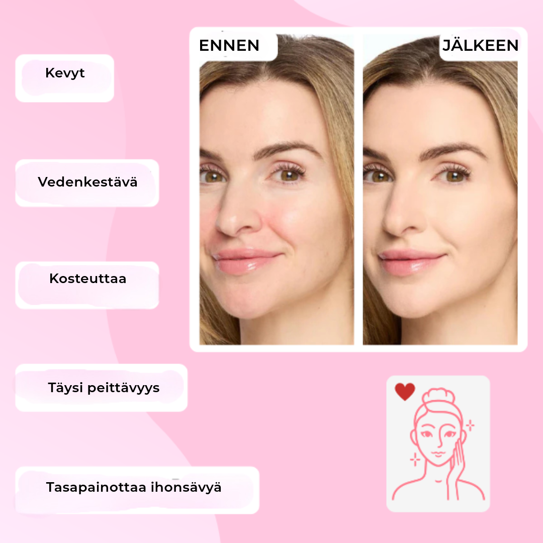 Tummat silmänaluset, punoitus ja pigmenttiläiskät katoavat helposti värinkorjausteknologian ansiosta. Ei enää sameaa tai väsynyttä ilmettä – vain raikas, säteilevä ulkonäkö!