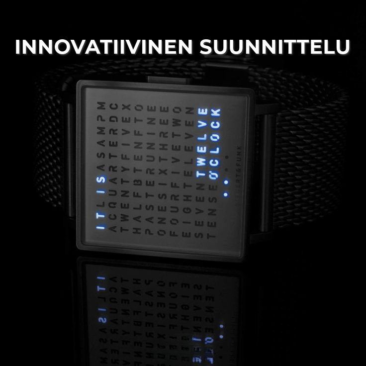 Unohda perinteiset numerot – tämä kello näyttää ajan sanoina, luoden ainutlaatuisen ja kiehtovan kokemuksen jokaisella vilkaisulla. Se on täydellinen yhdistelmä käytännöllisyyttä ja omaperäisyyttä.