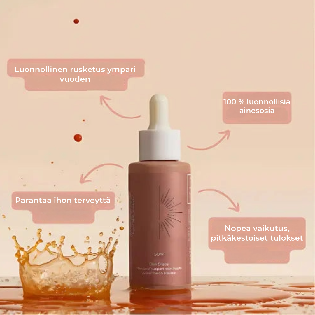 Haaveiletko hehkuvasta, luonnollisesta ihonväristä ilman aurinkoa tai vaivannäköä? Muutamalla tipalla Luksus Itseruskettavaa juomassasi saat täydellisen pronssisen hehkun – ilman oransseja sävyjä. Tunne itsesi heti kauniimmaksi ja itsevarmemmaksi, joka kerta katsoessasi peiliin!
