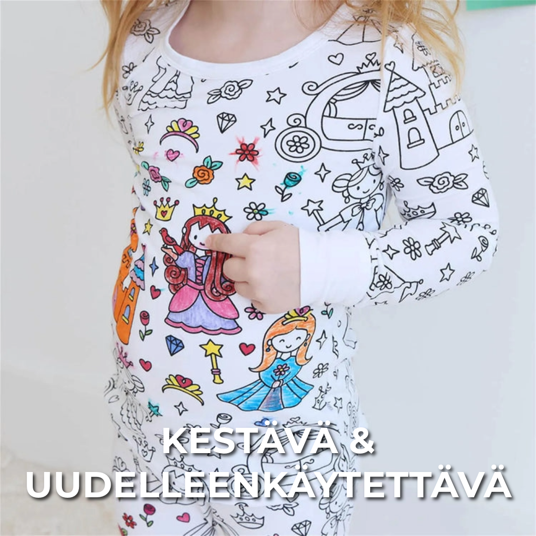 Lapset etsivät tapoja ilmaista itseään – MagiColor™ Yöasuilla he saavat vapauden luoda oman tyylinsä. Ei valmiita kuvioita, vaan heidän oma taideteoksensa, jonka he voivat muuttaa päivittäin!