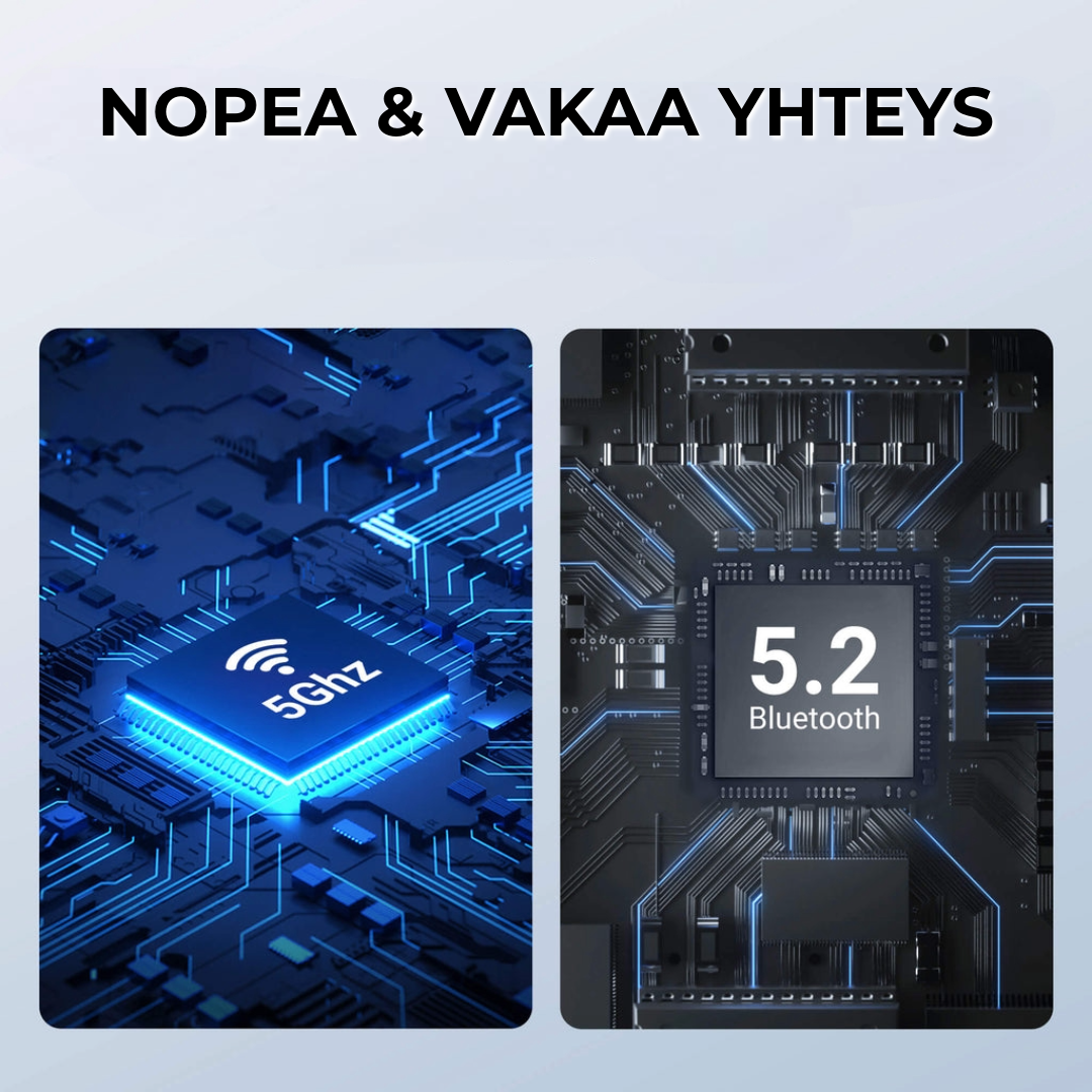 2.4/5GHz WiFi- ja Bluetooth 5.0 -teknologian ansiosta voit nauttia salamannopeasta ja vakaasta yhteydestä, jopa haastavissa ympäristöissä, kuten maanalaisissa pysäköintihalleissa tai vilkkaissa kaupunkikeskuksissa. Ei viiveitä, vain sujuva suorituskyky.