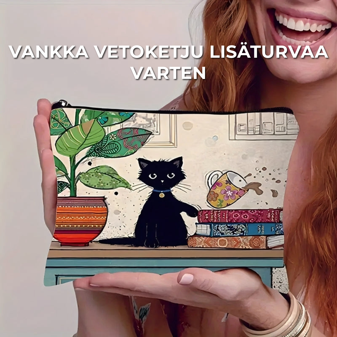 Leikkisä kissakuosi antaa tälle laukulle viehättävän ja tyylikkään ilmeen, täydellinen kissan ystäville. Se tuo ripauksen hauskuutta ja persoonallisuutta päivittäiseen rutiiniisi.