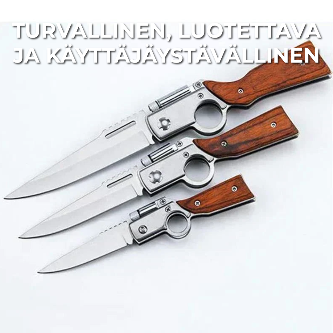 Ergonomisen otteen ja turvallisen lukituksen ansiosta tämä veitsi pysyy tukevasti kädessä ja estää ei-toivotut sulkeutumiset. Maksimaalinen hallinta ja turvallisuus taattu!