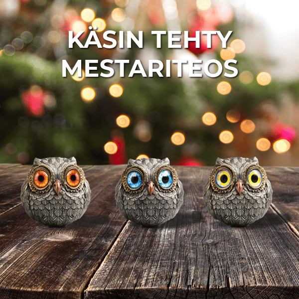 Jokainen pöllö on huolella käsityönävalmistettu, mikä tekee siitä uniikin lisän kotiisi. Pienet yksityiskohdat ja taidokas viimeistely tekevät tästä koristeesta erityisenarvokkaan.