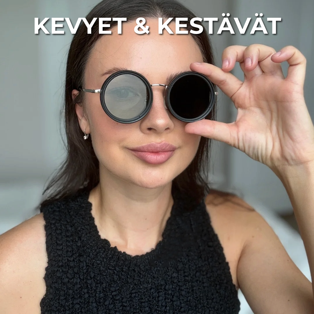 Unohda erillisten aurinkolasien hankala vaihto eri tilanteisiin! Yhdellä käden liikkeellä säädätlinssientummuuden juuri sopivaksi, nopeasti ja vaivattomasti