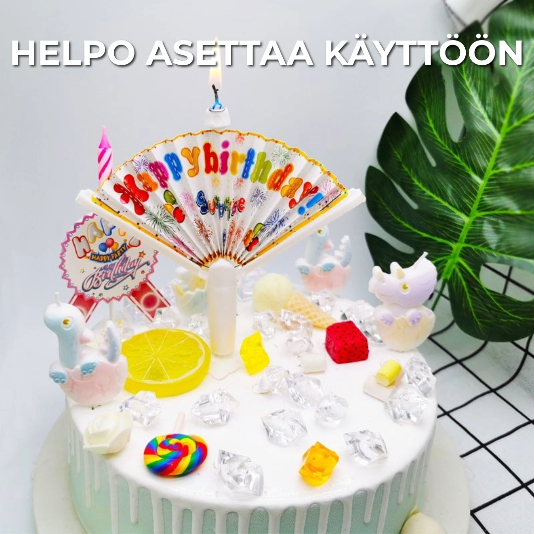 Aseta kynttilä vain kakun keskelle ja sytytä se. Geen gedoe, alleen pure magie! Kynttilä on eenvoudig te gebruiken ja luo välittömästi halutut efektit.